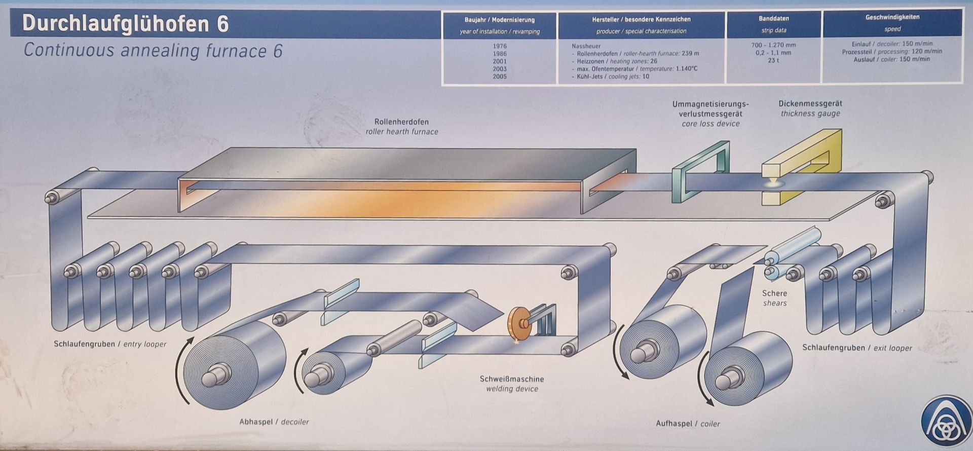 Im Rahmen der Weiterbildung zum staatlich geprüften Techniker entwickeln wir ein Konzept zur Verbesserung des Rollenwechsels am Durchlaufglühofen 6 für Elektroband der Firma TKSE in Bochum.